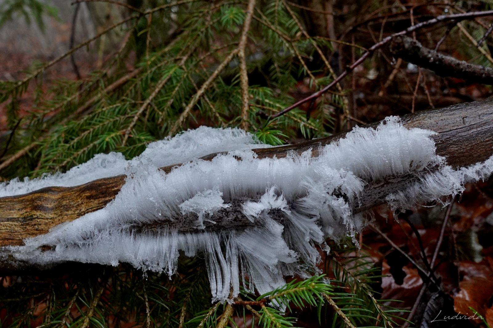 Ledové vlasy se tvoří výhradně na čerstvě trouchnivějícím listovém dřevě. Tady u nás konkrétně na buku. Nejdříve jsem si myslela, že tenký led obklopuje nějaké jemné vlákénko, ale když jsem je vzala do ruky, roztály se beze zbytku. Tehdy jsem se snažila o tomto jevu dozvědět více. Tedy: ledové vlasy musí mít podmínky k tomu, aby vznikly. 1. stabilní teplotu těsně pod nulou, 2. dřevo napadené houbou, která vytvoří jeho kapilární strukturu (Exidiopsis effusa), 3. vysokou vlhkost vzduchu., 4. bezvětří nebo místo chráněné před větrem. Jakmile se podmínky jen lehce změní, struktura se zhroutí nebo roztaje.
