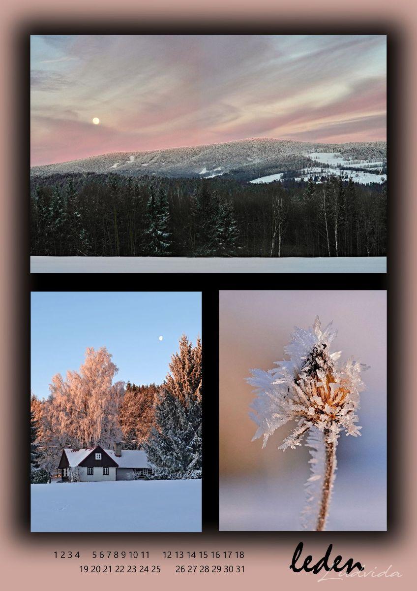 Moje puntičkářství se vpisuje i do vytváření jednotlivých měsíců, protože celá stránka musí být podle mých představ harmonická a ladící náladově, barevně a obsahově… Každým rokem je to obtížnější, protože po řadě kalendářů chci vždy udělat něco nového jiného zajímavého... Letos jsem měla už někdy od května záměr, ale realizace se nezdařila. To, co jsem si vymyslela, jsem neuměla přenést na papír (tedy do počítače). Mnoho dnů jsem se snažila, a pak jsem to opustila a čekala na jiný nápad. Teprve potom jsem začala připravovat kalendář. Vybrala písmo, to je moc důležité, a pracovala denně deset, dvanáct hodin s velikou radostí (a zodpovědností)… podle zvolené koncepce stránky: celek - výřez - detail. Někdy jsem na zvolené místo “posadila” fotografii a už ji nevyměnila, jindy jsem vybírala až z deseti snímků. Ještě včera jsem měla např. u června několik možností, které fotografie použít, ale dnes jsem se definitivně rozhodla a zbývající fotografie přesunula do složky “Kalendář 2027”.
