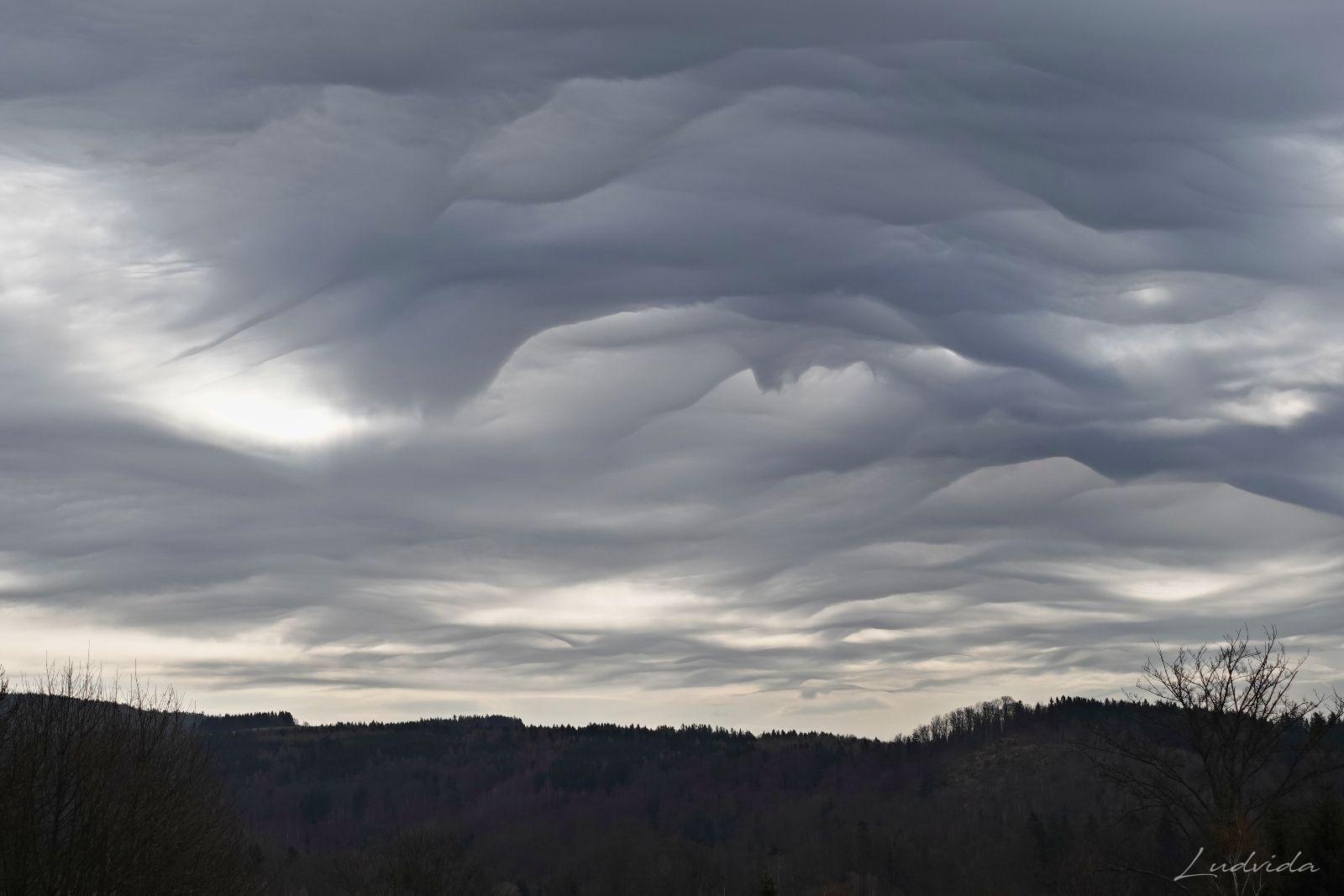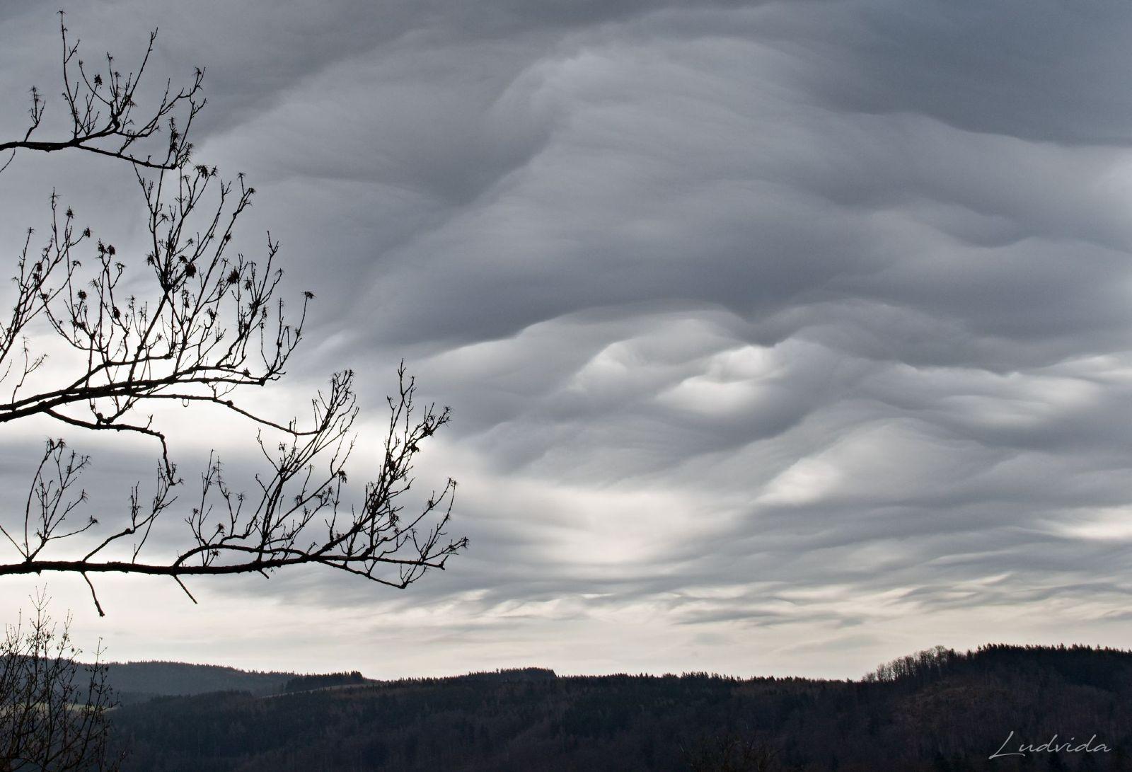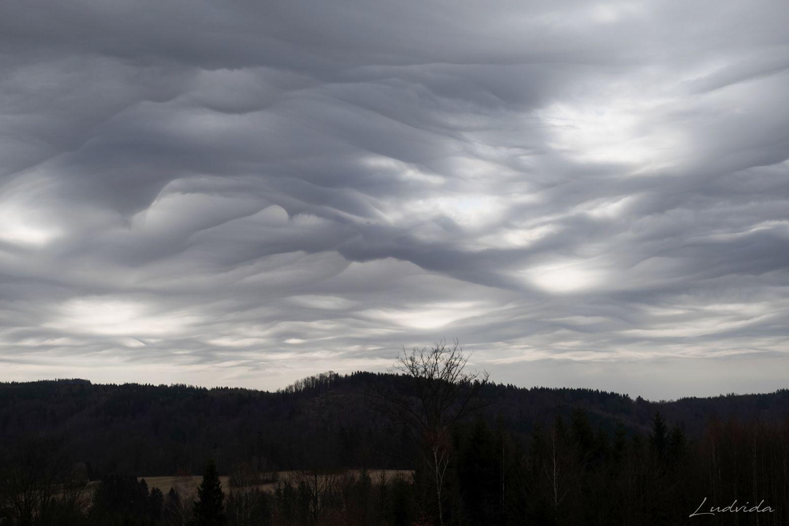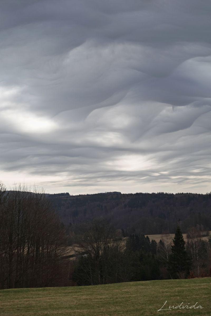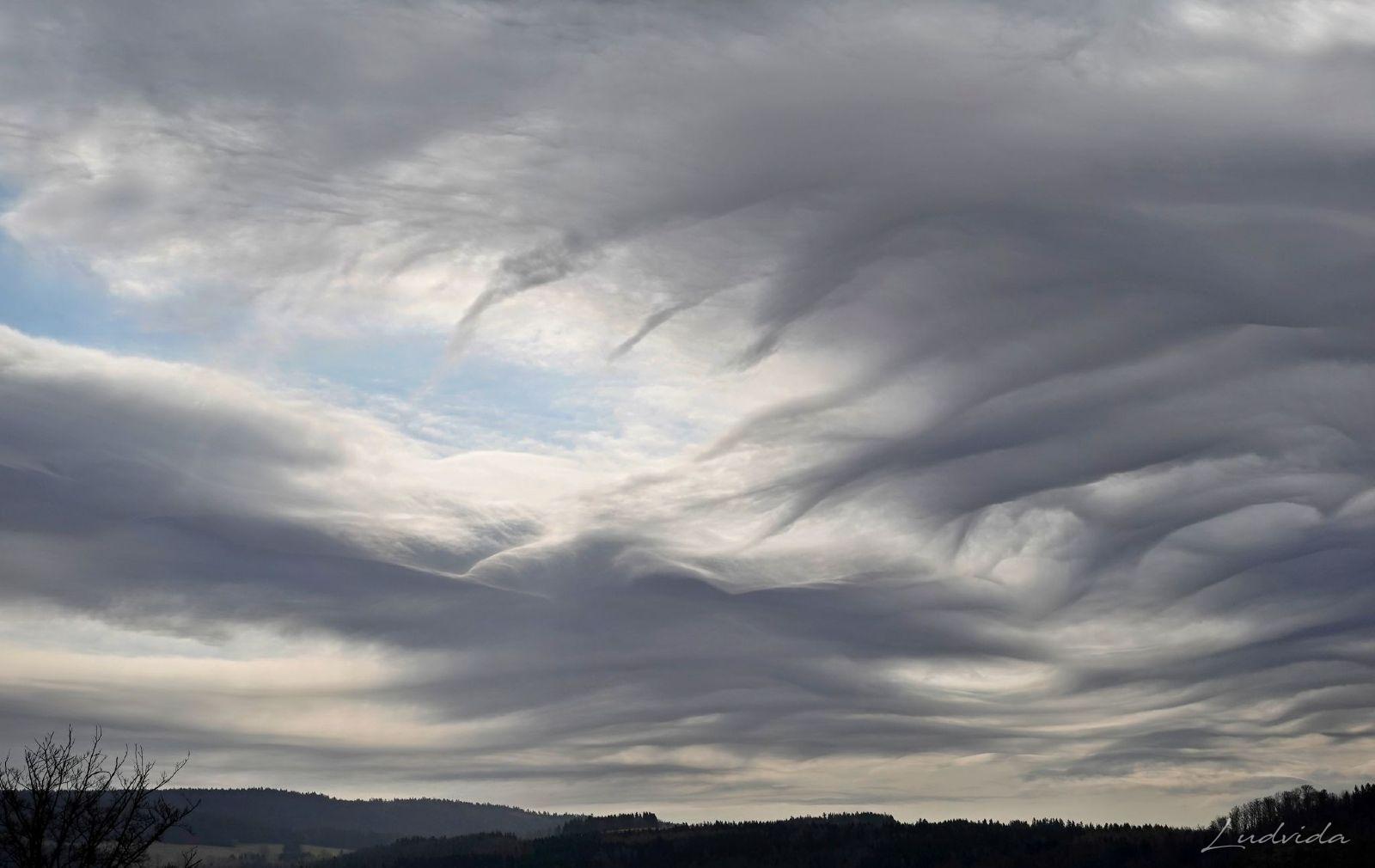 Dnes jsem byla svědkem vzácného úkazu. Vlastně jsem kvůli tomu opět vyběhla (bohužel v pantoflích) s foťákem v ruce na volnou louku vzdálenou asi 300 metrů , abych viděla a mohla vyfotografovat co největší plochu nebe. Mraky - bouřlivé šedo černo bílé vlny, které se velice rychle proměňovaly, špičky vln točící se do kruhu, prosvítající modrá obloha, oka z mraků a 3D jeskyně... Stála jsem tam fascinovaná dlouhé minuty (až mně zalezlo za nehty). Pak jsem “za tepla” dala video a pár fotografií na sociální síně, abych lidi potěšila pohledem na tu nádheru, ale reakce byly rozporuplné. To mne překvapilo, protože mě to dodávalo velkou energii. A tak jsem začala hledat informace...