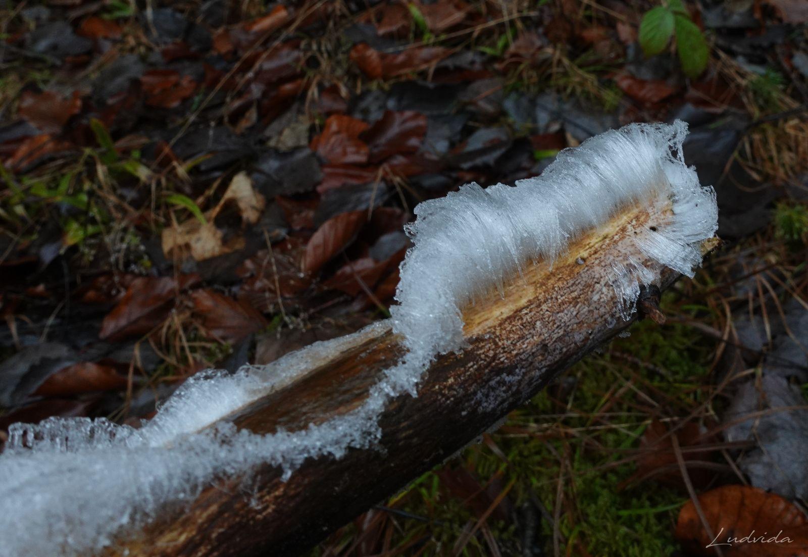 Ledové vlasy se tvoří výhradně na čerstvě trouchnivějícím listovém dřevě. Tady u nás konkrétně na buku. Nejdříve jsem si myslela, že tenký led obklopuje nějaké jemné vlákénko, ale když jsem je vzala do ruky, roztály se beze zbytku. Tehdy jsem se snažila o tomto jevu dozvědět více. Tedy: ledové vlasy musí mít podmínky k tomu, aby vznikly. 1. stabilní teplotu těsně pod nulou, 2. dřevo napadené houbou, která vytvoří jeho kapilární strukturu (Exidiopsis effusa), 3. vysokou vlhkost vzduchu., 4. bezvětří nebo místo chráněné před větrem. Jakmile se podmínky jen lehce změní, struktura se zhroutí nebo roztaje.